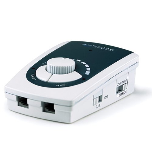 The Serene Business Telephone Handset/Headset Amplifier gives virtually any business phone or headset an amplification boost, increasing the volume on incoming voices up to 170 times (45+dB). Now the hard of hearing (or any telephone user) can enjoy louder, clearer calls and more comfortable phone conversations. In addition to the volume boost, the amplifier has several features that improve and enhance your listening experience. High Definition Sound (HDS) Technology eliminates virtually all distortion, echo effects and unwanted static. Digital Tone Enhancement boosts and enriches the speech frequencies that you can't hear well, making difficult to hear words intelligible again. Automatic Volume Control optimizes sound level for superior listening comfort. Patented technology enables the Serene Business Telephone Handset/Headset Amplifier to work with any headset with a RJ9 plug (same as telephone handset-cord connector). Powered by AC (adapter included.) One-year warranty.